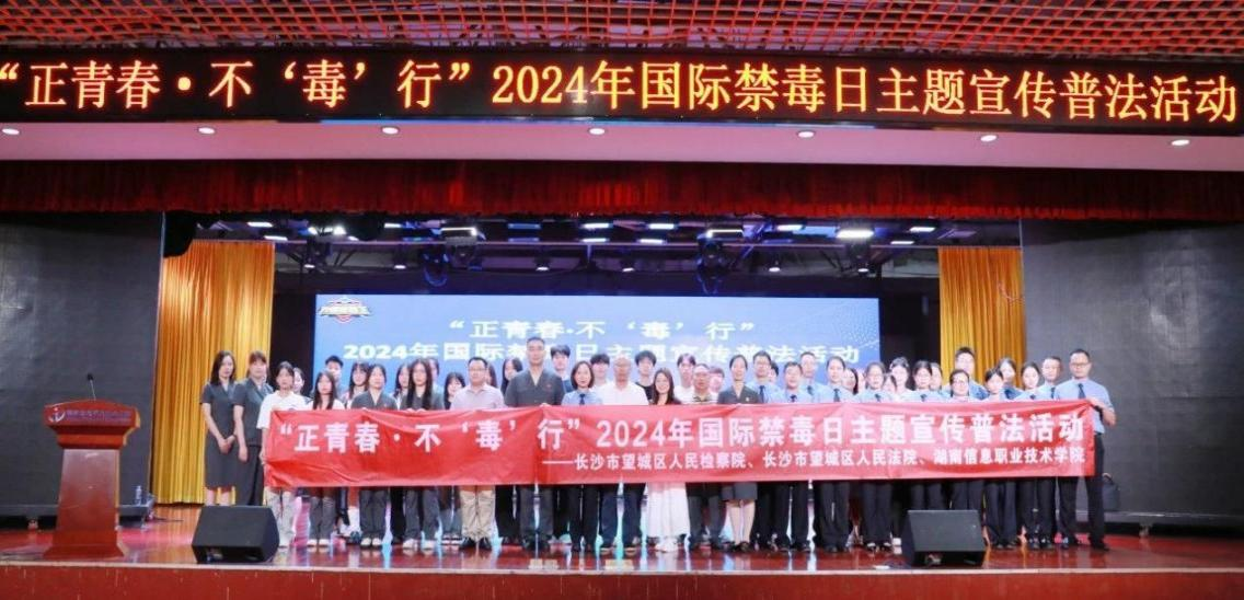 为不断提升青年学生对毒品、“以药代毒”危害的认知,提高青年学生识毒、防毒、拒毒意识和能力,近日,我院联合长沙望城区检察院、长沙望城区法院共同开展“正青春·不‘毒’行”主题禁毒宣传活动,活动覆盖全院10000多名学生。