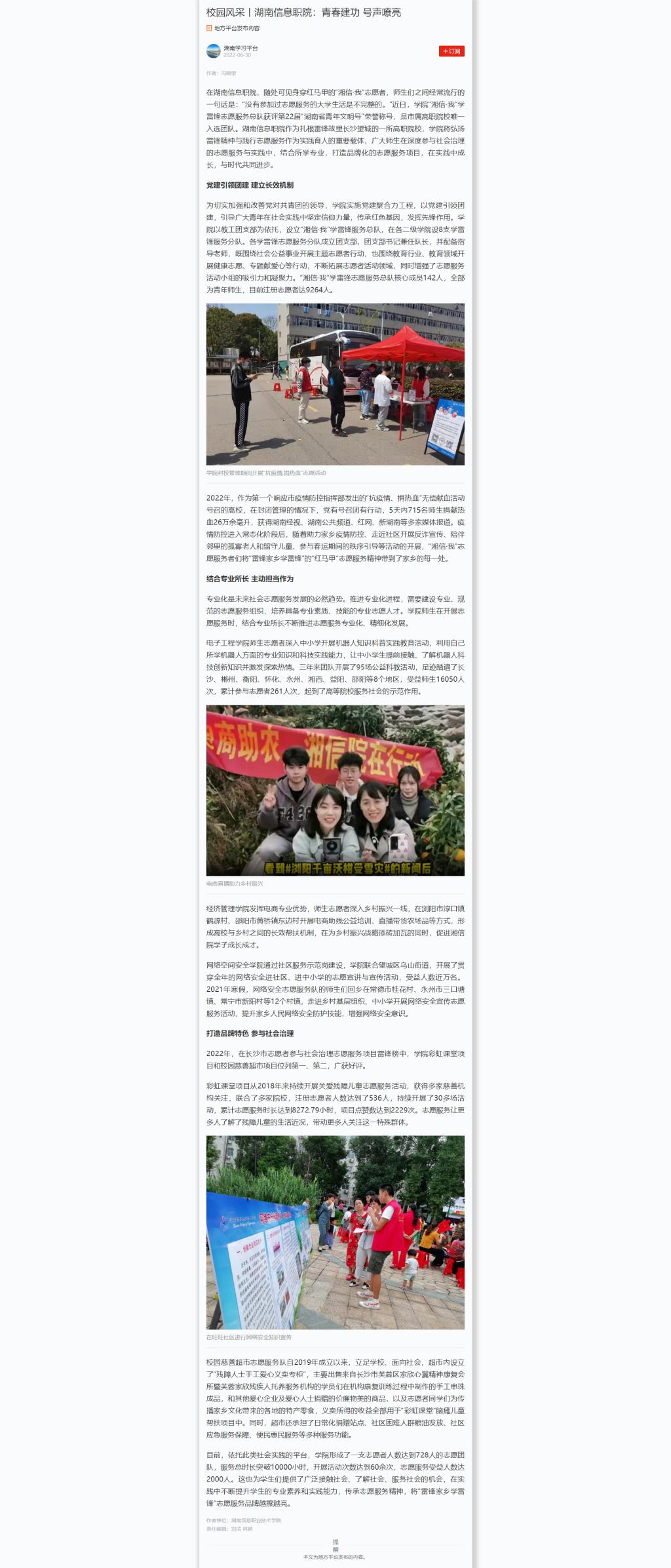 6月30日,学习强国发布《校园风采丨湖南信息职院:青春建功 号声嘹亮》