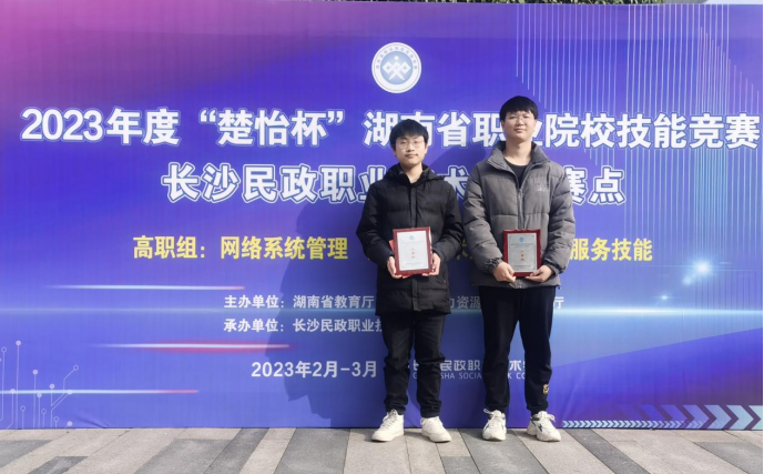 2月25日,2023年度“楚怡杯”湖南省职业院校技能竞赛高职网络系统管理赛项在长沙民政职业技术学院圆满落幕。我院选派两组选手参加该赛项,其中罗奇老师指导的云计算2103班陈建林同学荣获二等奖,杨辉老师指导的计网2002班王阳同学荣获三等奖。