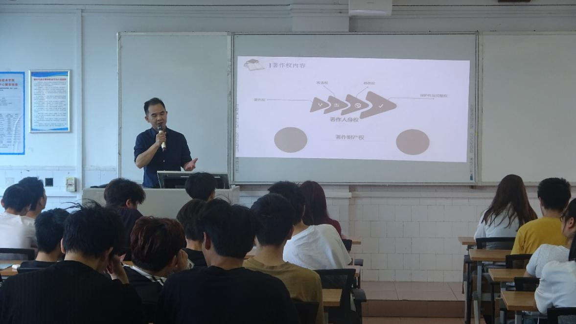 活动中“望见美好”志愿服务队刘题解老师从著作权入手,深入浅出地向同学们介绍了知识产权的基本概念和法律保护框架。在宣讲过程中,刘老师利用知识抢答方式与学生进行互动,最后还耐心解答了学生提问,并针对性地分享了一些实用的保护知识产权的方法和技巧。