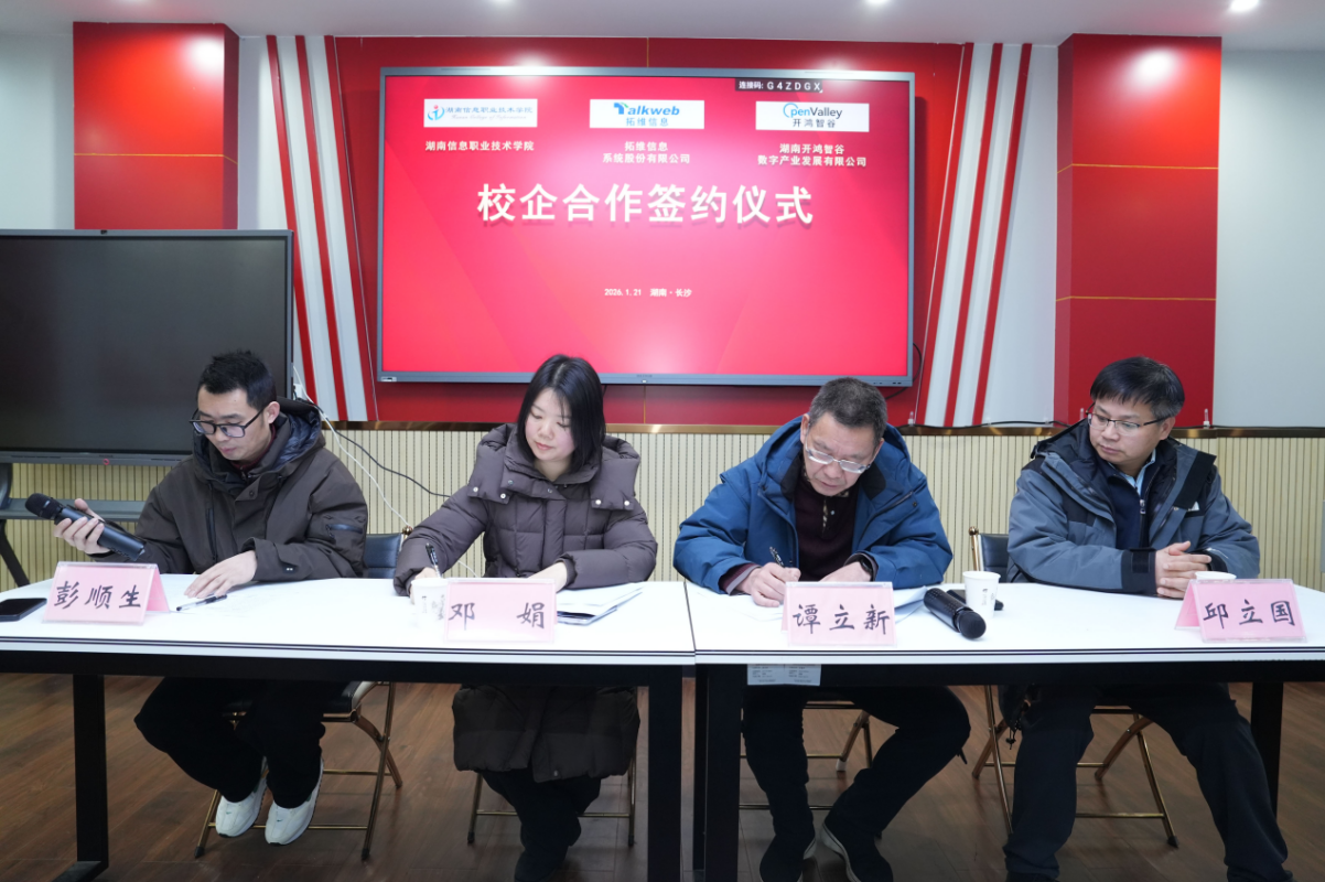 近日,由全国新一代自主安全计算系统行业产教融合共同体与全国新一代智能信息系统行业产教融合共同体联合指导,我院与拓维信息系统股份有限公司(以下简称“拓维信息”)及旗下子公司湖南开鸿智谷数字产业发展有限公司(以下简称“开鸿智谷”)联合承办的“2026开放原子校源行师资培训暨全国开源鸿蒙技术应用开发寒假师资培训(湖南站)”在我院顺利举办。我院党委委员、副院长谭立新,拓维信息、开鸿智谷产业与人才发展部总裁邓娟及校企代表参加开班仪式。
