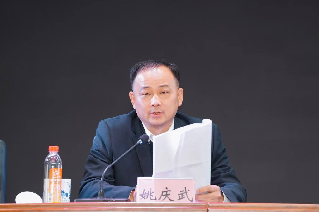 朱焕桃做开学工作报告及新学期工作部署。他指出,2025年是我院办学建校50周年,在学院党委的坚强领导下,全院上下锚定高质量发展目标,聚焦“三争四稳五提”工作任务,在党建引领、内涵建设、服务保障等领域攻坚克难、实干笃行,交出了一份亮眼的答卷。这些成绩的取得,凝聚着全体教职工的智慧和汗水!
